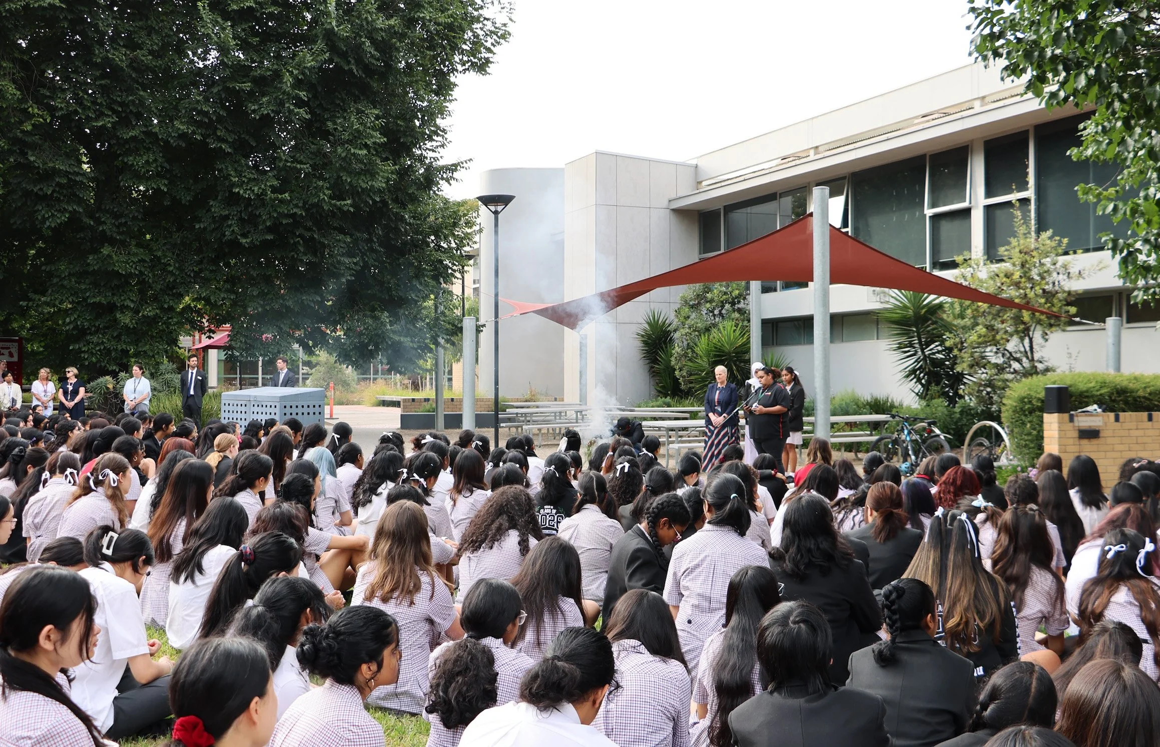 We officially commenced the school year with a deeply moving Welcome to Country and Smoking Ceremony. Led by Bunurong community members Lakesisha Clayton and James Brown, the ceremony provided a moment of reflection and connection to the land we learn on, setting a respectful tone for the months ahead.